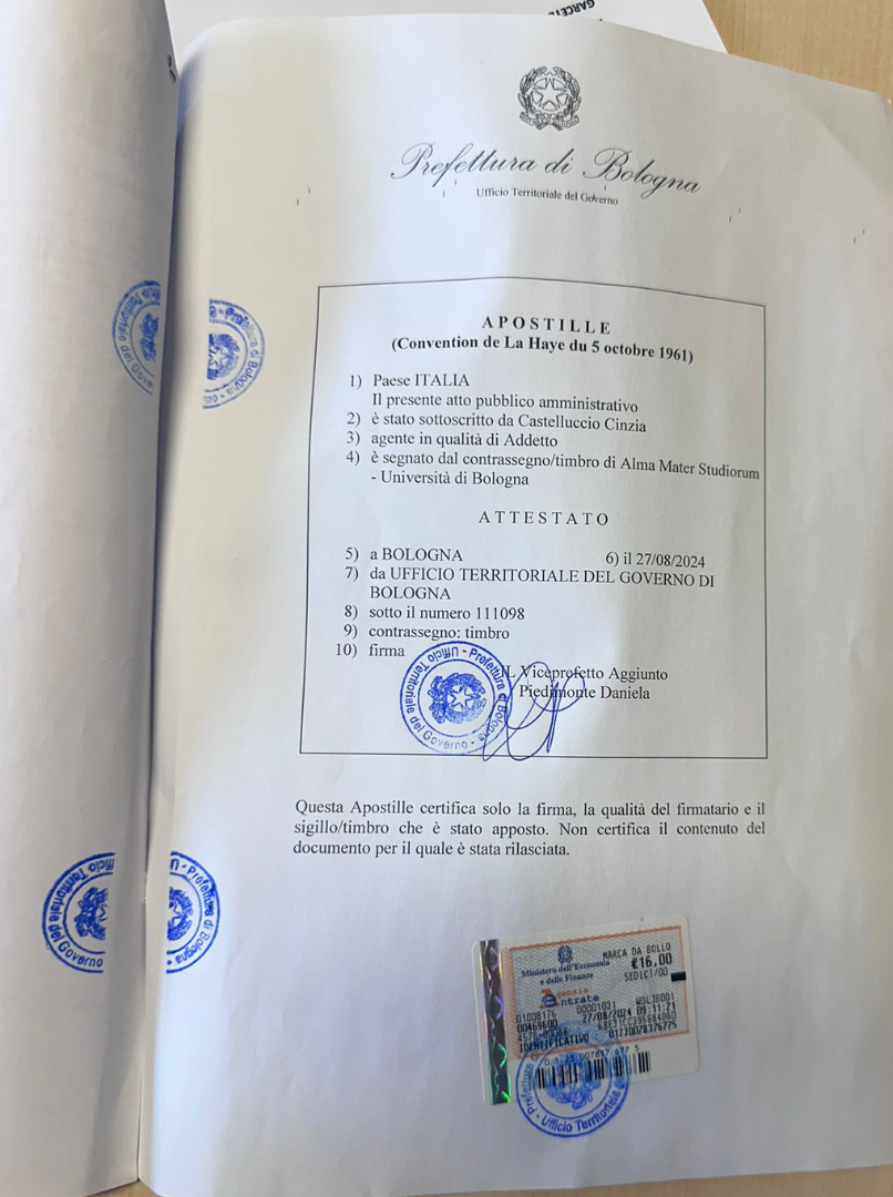 This service is ideal for those who need to validate birth certificates, marriage certificates, judicial documents, academic diplomas, or other Italian documents for migration, educational, professional, or legal procedures outside Italy.